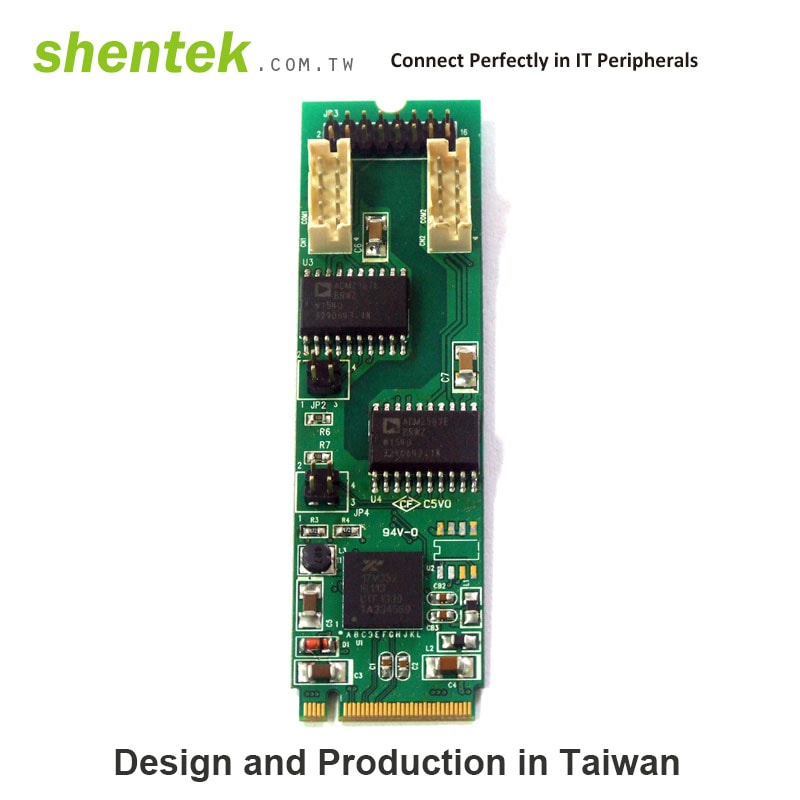 shentek M.2 embedded card has few kind of type - 2 port RS422 RS485 M.2 Card supports M key and B key M.2. The Card also supports 2.5KV Isolation protection. It also come with 4 wire RS485 spec