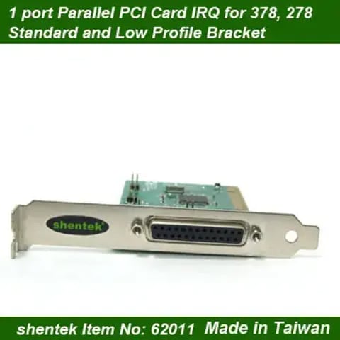 shentek releases 1 port ParallelUniversal PCI Card. It is compliance with PCI 33MHz ver 3.0/2.3/2.2/2.1specification. It designs for standard and low profile bracket. With this card,it can add 1 port Parallel to your system’s need. For Parallel Port,it supports IEEE Standard 1284 protocols(compatibility mode, Nibble mode, Bytemode, EPP mode, and ECP mode) for 16byte SPP/ECP mode. It also supports I/ORemap function, it allows Parallel can remap to 378 and 278. It is good withall kind of industrial